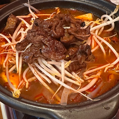마라곱창전골 시그니처메뉴라고 해서 주문했는데 시그니처다운 맛이었어요. 꿔바로우와의 조합도 최고입니다.