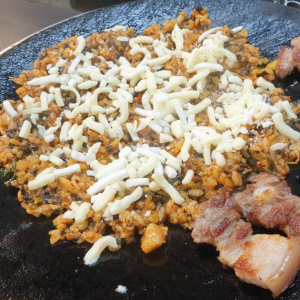 고기 다 먹고 솥뚜껑에 볶아먹는 밥은 최고예요.