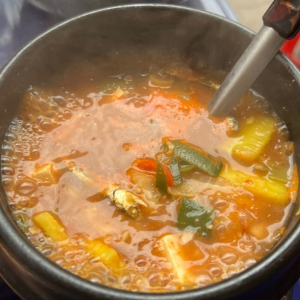 솥뚜껑에 고기 구워먹고 솥뚜껑 뒤집어서 볶음밥도 먹고 너무 맛있게 먹었어요.