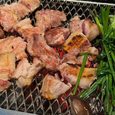 숯불부터 고기 질이 엄청 좋아요. 사진대로 엄청 맛있습니다. 역시 숙성흑돼지를 이길 돈품종은 없나봐요.