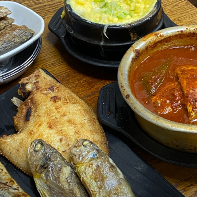 갈치조림2개 모듬구이1개 시켜서 먹었는데 둘다 비린내 전혀없고 양도 푸짐해서 배부르게 먹고 나왔습니다. 서비스로 주시는 계란찜도 맛있었어요.