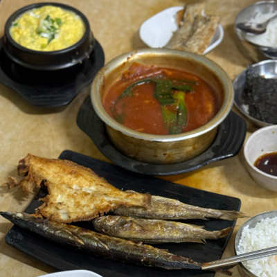 함께 나오는 계란찜이랑 갈치 튀김 김치 나물 다 맛있었어요. 사장님 친절하셨어요.