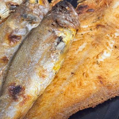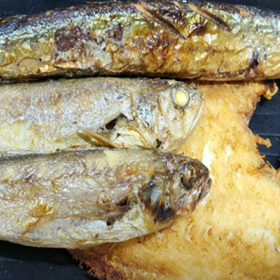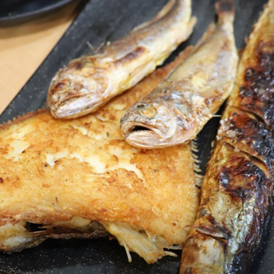 모둠생선구이는 가자미와 꽁치, 작은 굴 비가 나오는데 둘이서 갈치조림과 함께 주문하니 만찬이 따로 없네요.
