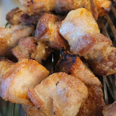 일단 숯이 좋고 전반적으로 소스가 다양하고 맛이 자극적이지 않아 아주 맛있어요. 마무리는 소스에 담가 두었던 양념고기로 했어요.