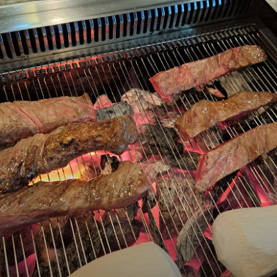고기 골라서 입장해서 숫불에. 살짝 익혀 먹으면 완전 꿀맛입니다. 한우 저렴하게 먹을 수 있어서 좋아요.
