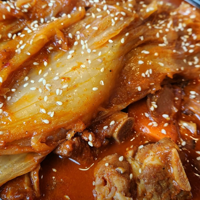 김치와 갈비의 조합 진짜 맛있어요. 고기에 있는뼈가 쏙쏙빠지고 맛있게 매콤해요.