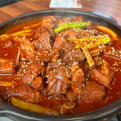 매운돼지갈비찜 원탑이에요. 진짜 매운데 달달한 맛도 있어서 중독되는 맛입니다.