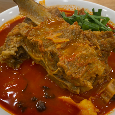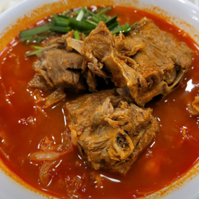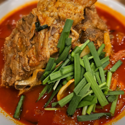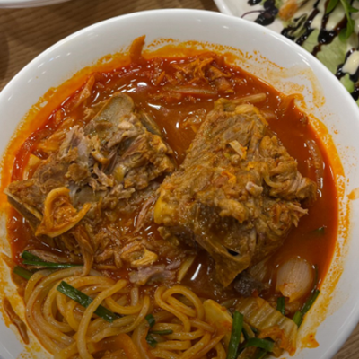 뼈대짬뽕 완전 얼큰하니 해장으로 딱이예요. 감자탕에 들어갈 것 같은 큰뼈가 들어가 있어서 양이 엄청 많아요.