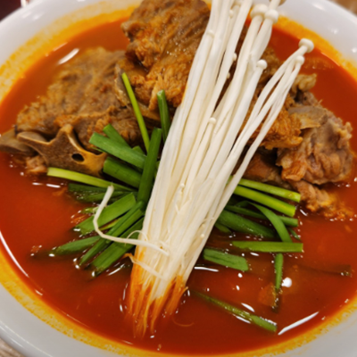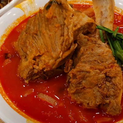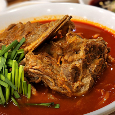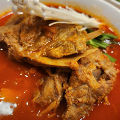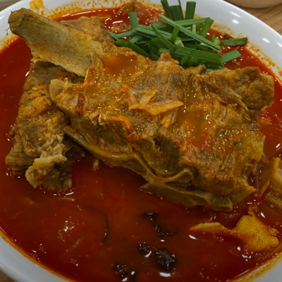 뼈대짬뽕 완전 얼큰하니 해장으로 딱이예요. 감자탕에 들어갈 것 같은 큰뼈가 들어가 있어서 양이 엄청 많아요.