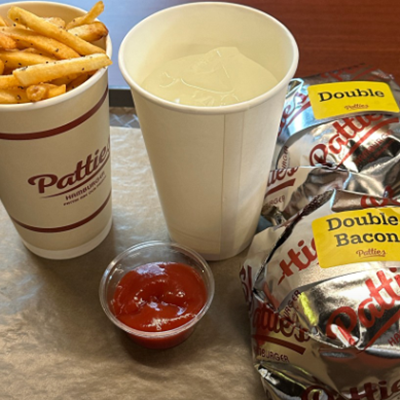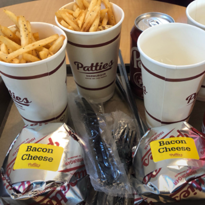 줄서는 수제 버거 패티스 다녀왔어요. 베이컨치즈버거, 더블버거와 사이드 콤보 2번으로 주문했어요. 버거 왜 맛집인지 인정하게 되는 패티에요.