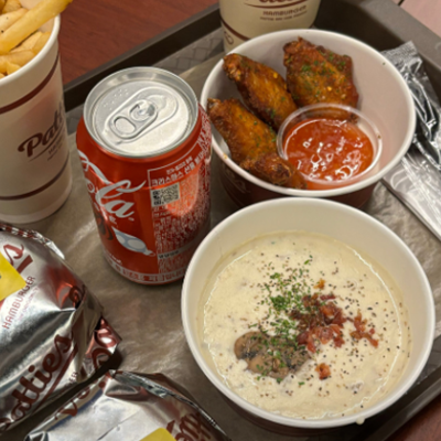 콤보 조합으로 단돈 8천원에 먹을 수 있는 립과 사이드로 나오는 윙 감튀 스프까지 정말 맛있네요.
