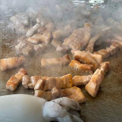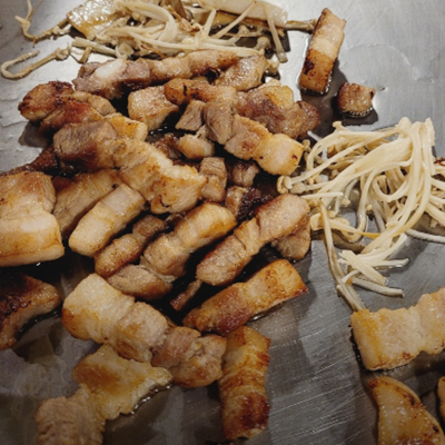 이른시간부터 삼겹살이 먹고 싶었는데 여기는 일찍 오픈이라 점심부터 불쇼보면서 신나게 고기 먹었습니다.