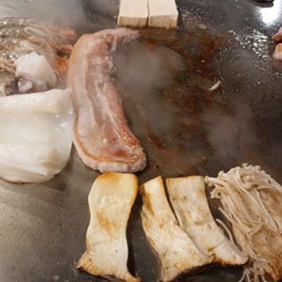경산 추억의 우미관 철판구이 맛집입니다. 직접 구워주시니 편하게 맛있게 먹을수 있어요.