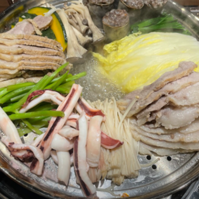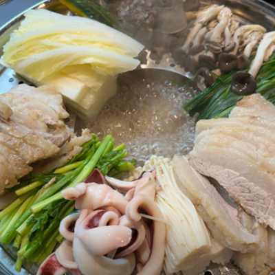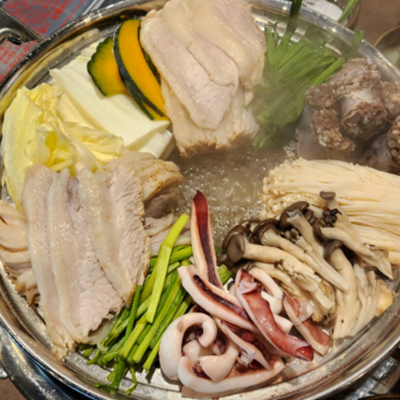 모듬수육전골 너무 맛있어요. 수육도 부드럽고 오징어도 야채도 버섯도 신선해서 좋아요.