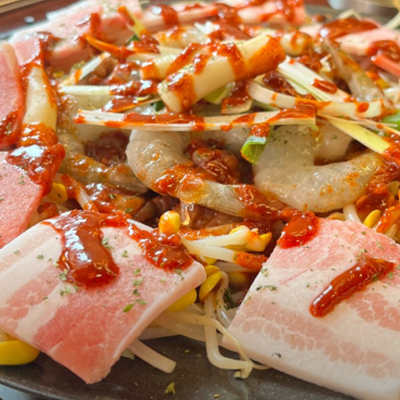 쭈꾸미와 삼겹살의 컬래버 쭈삼입니다. 보통맛, 매운맛, 아주 매운맛 3단계의 맵기가 있어 맵고수는 물론 맵찔이도 즐길 수 있는 줄서는 쭈꾸미집이예요.