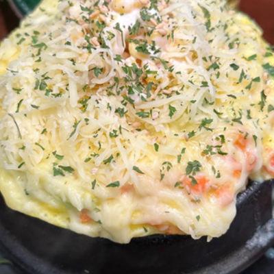 쭈곱과 쭈삼 중에서 쭈삼을 선택하여 나온 2인 세트엔 계란찜과 주먹밥, 치즈 토핑이 함께 나와 푸짐합니다.