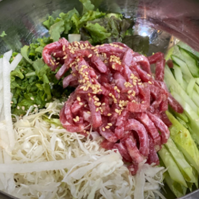 고기는 물론 육회, 된장찌개, 물냉면 모두 맛있게 먹었어요. 불고기 맛있게 먹었어요.