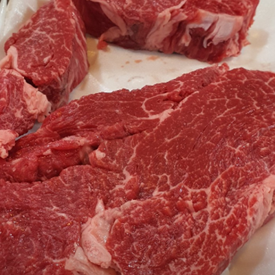 오늘은 채끝과 등심 샀어요. 가격은 싼편, 채끝이 연하고 맛이 좋아요.