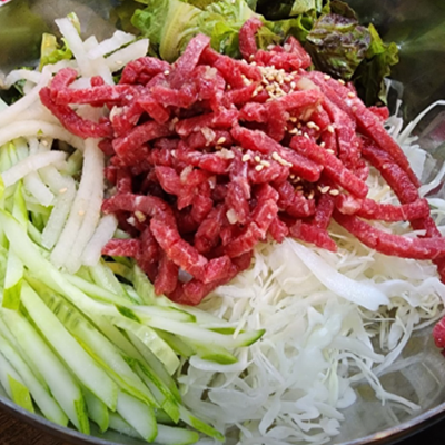 고기는 물론 육회, 된장찌개, 물냉면 모두 맛있게 먹었어요. 불고기 맛있게 먹었어요.