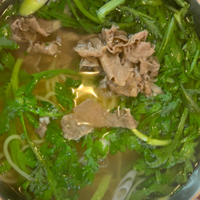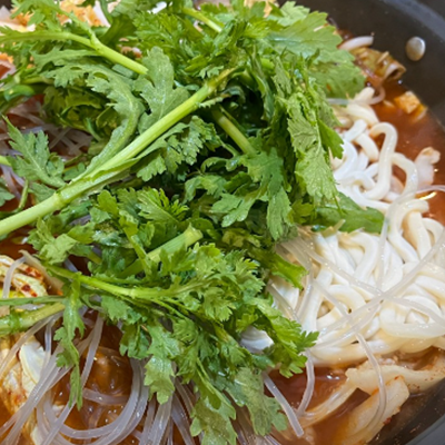야채육수 국물이 깔끔하고 쑥갓 고기랑 면이랑 잘어울려요.