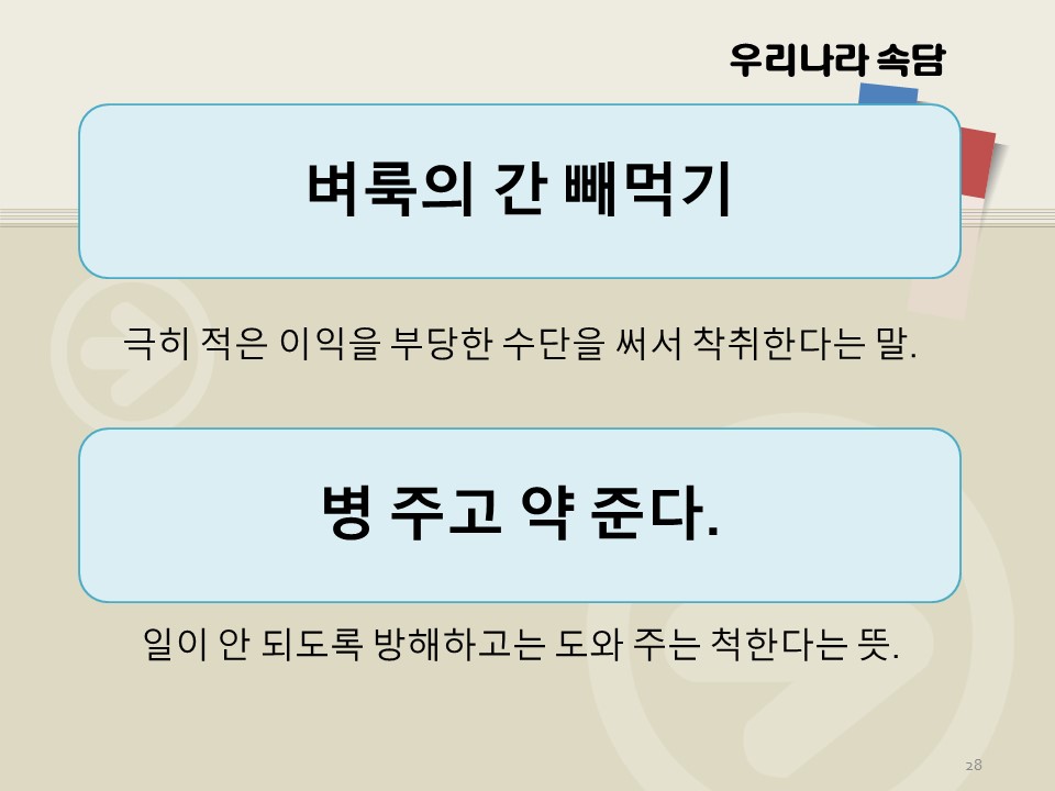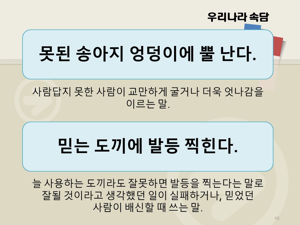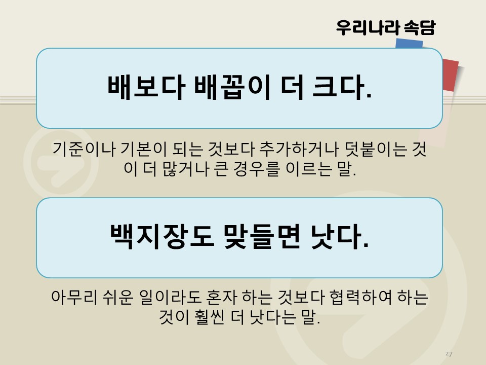 오늘은 이렇게 우리나라 속담 100가지 중 5번째 시간이었습니다.