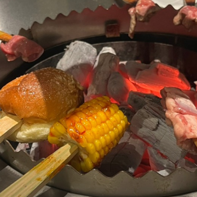 둥근화로불에서 구워먹는 다양한 꼬치류가 맛있고 신기방기해요. 특히 사이드메뉴 부라타가지튀김 진짜맛있네요.