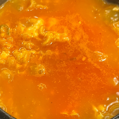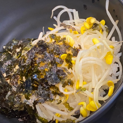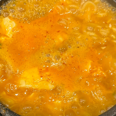 칼칼한 찌개에 밥+콩나물+김가루 촥촥 넣어서 비벼 먹으면 맛있습니다. 일반적인 순두부찌개보다는 조금 더 간이 있는 편이에요.