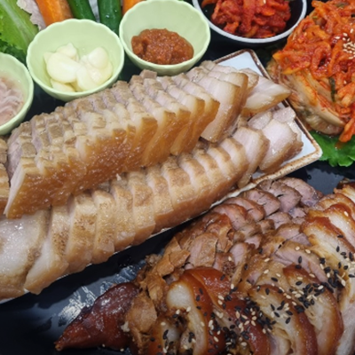 직접가서 가져오면 6천원 할인 받아요~ 쫄깃하니 비계도 적당히 있고 맛있어요. 막국수도 서비스로 주시고 맛있게 잘먹었어요.
