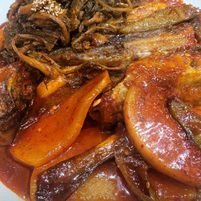 매콤달콤 쫀득쫀득하고 솥밥 밥알이 찰져서 맛있어요. 시래기 추가해서 드세요.
