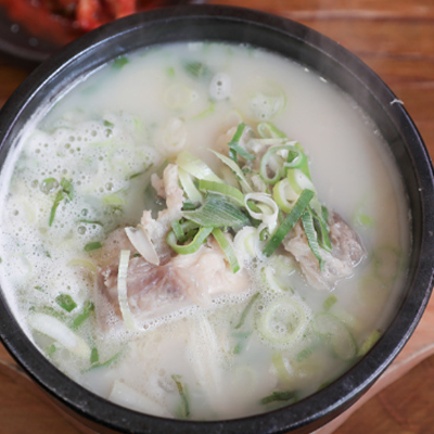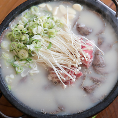 한우 뼈로 푹 고아 만든 고소하고 깊은 사골 진국의 맛이 일품입니다.