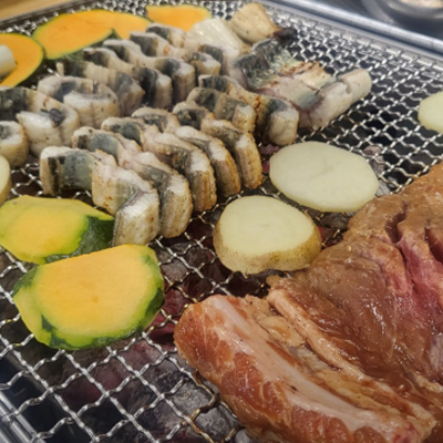 같이 구워먹을 수 있는 신선한 야채랑 반찬류가 많아요. 숯 마저 정말 좋아서 숯도 포장해가고 싶어요.