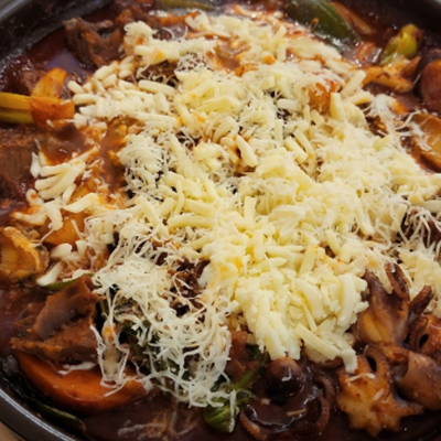 매운갈비찜 너무 맛나요. 소갈비라 부드럽고 아주 맛나구요. 위에 치즈 올리니 더 좋네요.