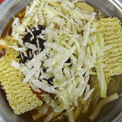 1인세트하고 무침만두 주문했어요. 양 푸짐하고 맛있어요. 떡 계란 라면 쫄면 어묵 양배추 다양하게 있어요.