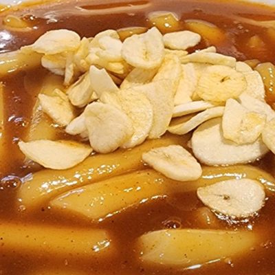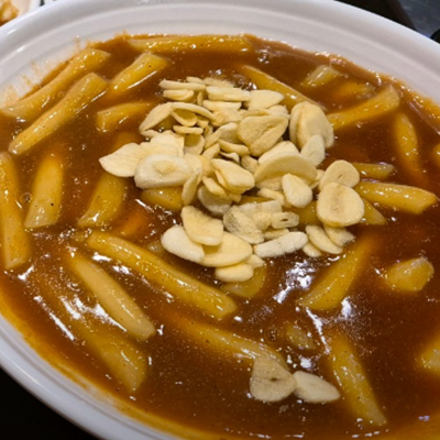 마늘과 후추향이 강한 떡볶이 입니다. 기존 떡볶이가 식상해서 새로운 맛을 원하신다면 강추입니다.