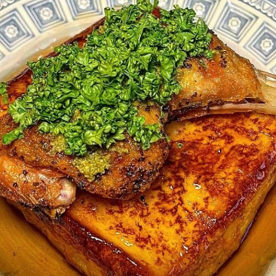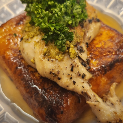 브런치 중에서 고급스러움의 끝판왕입니다. 숙성한 프렌치 토스트와 닭다리가 만나 단짠의 극강 조합 등극한 것 같아요.
