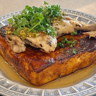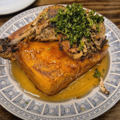 브런치 중에서 고급스러움의 끝판왕입니다. 숙성한 프렌치 토스트와 닭다리가 만나 단짠의 극강 조합 등극한 것 같아요.