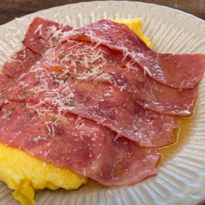 피스타치오만의 고소함과 감자와 치즈의 부드러움 폭발입니다. 토마토 스크램블 에그는 비주얼 최고에 맛 또한 장난 아니예요.