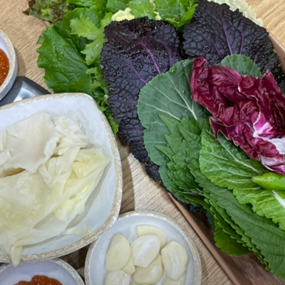삼겹살에는 상추이지만 여기선 신선한 야채를 푸짐하게 마음껏 먹을 수 있어 너무 좋아요.