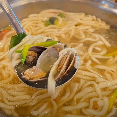 바지락이 많이 들어가서 국물이 시원하고 칼국수 면도 쫄깃쫄깃 해요.