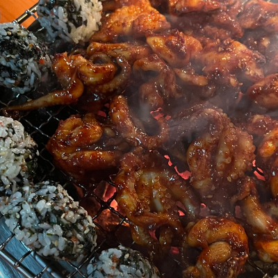 매운 거 잘 드시는 분들은 닭발 필수에요. 주먹밥 구워서 그 위에 닭발 올려먹으면 기가 막히는 맛입니다.