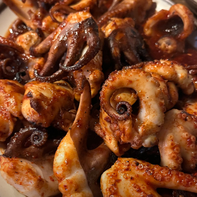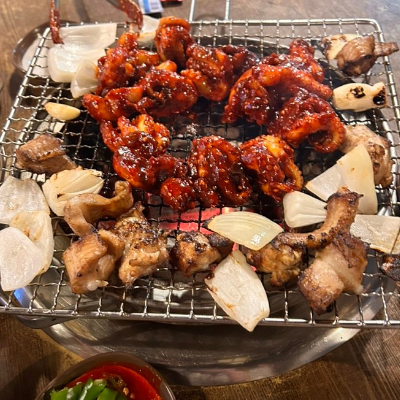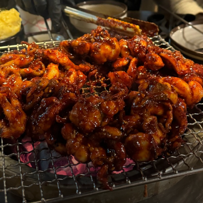 술을 부르는 쭈꾸미와 꼼장어입니다. 주먹밥 구워먹으면 극락갑니다. 불향이 좋고, 개인적으로는 많이 안맵고 매콤한 정도에요.