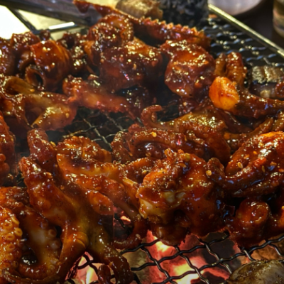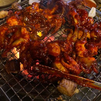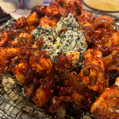 술을 부르는 쭈꾸미와 꼼장어입니다. 주먹밥 구워먹으면 극락갑니다. 불향이 좋고, 개인적으로는 많이 안맵고 매콤한 정도에요.