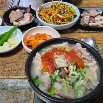 먹다보면 칼칼해지는데 너무 맛있어요. 기본반찬으로 나오는 수육이랑 겉저리도 진짜 맛있어요.