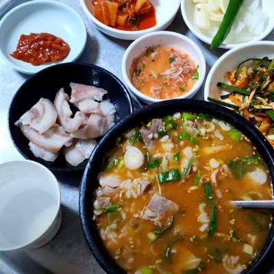 먹다보면 칼칼해지는데 너무 맛있어요. 기본반찬으로 나오는 수육이랑 겉저리도 진짜 맛있어요.