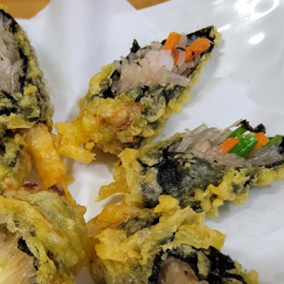 김말이 가격대는 있지만 맛있고 고급스럽네요. 바로 튀겨주시고 맛있어요! 대기 꽤 있어요.