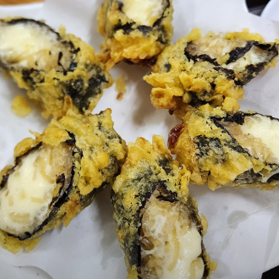 치즈김말이 독특하고 맛있어요. 치즈가 진짜 많이 들어있고 반개가 묵직합니다. 다른 김말이도 먹어보고 싶어요.