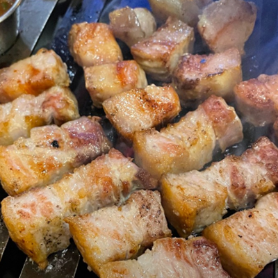 고기 두툼한데 불향이 나고 맛있었어요 소금에 찍어먹어도 맛나고 멜젓과도 맛나네요.