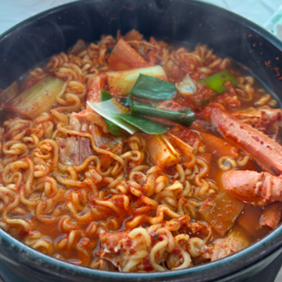 홍게 무한리필 드세요. 살이 꽉차서 맛있었고, 라면에 밥까지 너무 배불렀어요.
