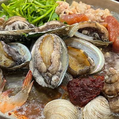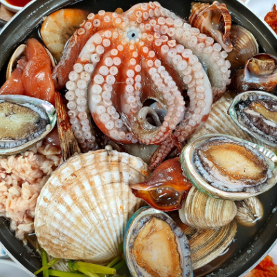 전복 낙지 조개 오징어 곤이 새우 게 등 신선함이 넘치는 해물 재료들이 들어있어요.