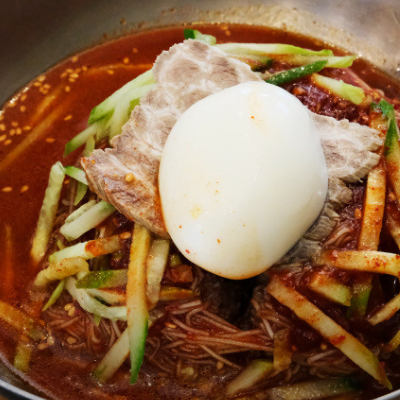 회냉면 강추에요. 물냉면은 동치미맛의 육수가 시원해서 맛있고요 가족끼리 단란하게 와서 갈비찜이나 불고기찜 먹으면 넘 좋을듯요.